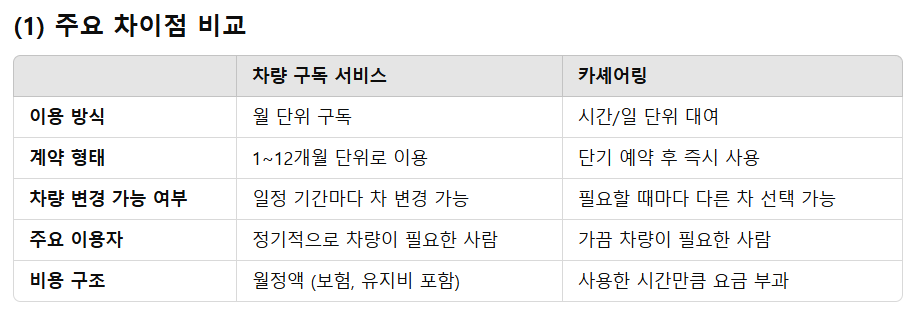 4. 차량 구독 vs. 카셰어링: 무엇이 더 나을까?